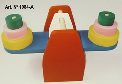 Art. Nº 1084-a Balanza matematica. Medida: 25 x 14 x 10 cm Fichas: Grandes: 6 x 1,5 cm Medianas: 4,5 x 1,5 cm Chicas: 3 x 1,5 cm